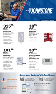 15 ©2026 Johnstone Supply, LLC 2999 H29-286 Mfg. #1025 Klein Tools Long Nose MultiPurpose Wire Stripper Combination wire stripper, cutter, screw shearing, and crimping tool NEW 11699 W80-203 Mfg. #MUKIT Supco Magnetic Umbrella Kit Stay in the shade on scorching rooftops, and keep tools dry during rainy repairs 8999 G38-609 Mfg. #2013R Milwaukee Rechargeable LowProfile Magnetic Task Light 3 Modes: High: 500 Lumens, Medium: 250 Lumens, Low: 100 Lumens 39799 H29-035 Mfg. #48-59-1815 Milwaukee M18™ Dual Bay Simultaneous Super Charger Simultaneously charges two M18™ batteries Delivers up to 6x faster charging to 80% 5399 H29-291 Mfg. #32984 Klein Tools Swivel Flip Impact Socket Set 6-Piece 25° swivel head with 360° rotation Provides access in confined or angled areas NEW 6999 W69-457 Mfg. #R103L CLC 3-Piece Nylon Rain Suit Black jacket, elastic pants and detachable hood LEARNING THAT EARNS Enroll today at JohnstoneUniversity.com ENSURE OPTIMAL PERFORMANCE IN COMMERCIAL BUILDINGS Advance your HVAC career with the course, 423 Commercial Water Source Heat Pump Systems. Earn 18 NATE CEHs! FIND ONLINE OR STOP IN TODAY MORE OPTIONS ONLINE